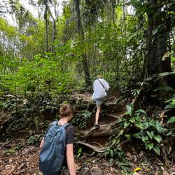 Hallo luitjes, hier weer een hoognodige update. De dag nadat jullie de vorige update kregen, gingen we tuben, wat een stoere naam is voor lekker de rivier af dobberen. Emiel en Jesse gingen niet mee, maar gelukkig was het zonder hen ook nog een leuke ervaring. Er is een slang gespot en heel wat vissen. De rest van de tijd liggen we wat bij het zwembad, of eten we het heerlijke Thaise eten hier. Gisteren gingen Rosan, Ruben en Jesse een wandelingetje maken door het national park wat hier ligt. De jungle was echt mooi, ook al was het wel echt goed warm. We gingen op pad naar een paar watervallen, die we helaas allemaal gemist hebben vanwege de matige bewegwijzering, ofwel vanwege onze off-road avonturen. We konden gelukkig wel gewoon zwemmen in de rivier, dus het plan was uiteindelijk gewoon geslaagd. In de avond werden Emiel en Jasmijn gemasseerd, terwijl Youp en Ruben een zalige yoghurtbehandeling kregen. Youp vond de yoghurt massage fijner dan een Thaise massage, Ruben niet. Smaken verschillen. Nu gaan we een overnachting op het meer doen, wat als het goed is prachtig is. Tot snelBaca selengkapnya