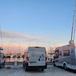 ***** Stellplatz Jachthafen Almerimar (mehrere Kurzaufenthalte): Die Lage des Platzes im hübschen Jachthafen von Almerimar ist ein Traum (außer am Wochenende, wenn der Bass der Techno Disco bisRead more