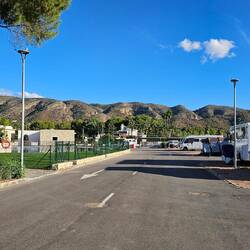Direkt am Campingplatz führt ein Radweg vorbei, auf dem man zur 4 km entfernt liegenden quirligen Strandpromenade kommt. Er liegt genau zwischen 2 stark befahrenen Straßen. Wir standen in der Mitte des Platzes und konnten mit dem Grundrauschen des Straßenverkehrs gut leben. Besonders gut gefallen hat uns der schöne Blick auf die umliegenden Berge. Außerdem kann man direkt vom Platz aus Wanderungen unternehmen.