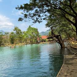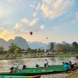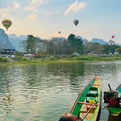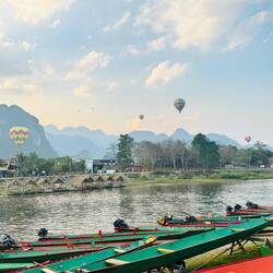 In Vang Vieng gab es viel zu tun. Einige Lagoonen zu besichtigen, Slipline oder eine Ballon Tour. Wir haben ein nettes Kölner Pärchen kennengelernt, mit den wir sehr viel unternommen haben