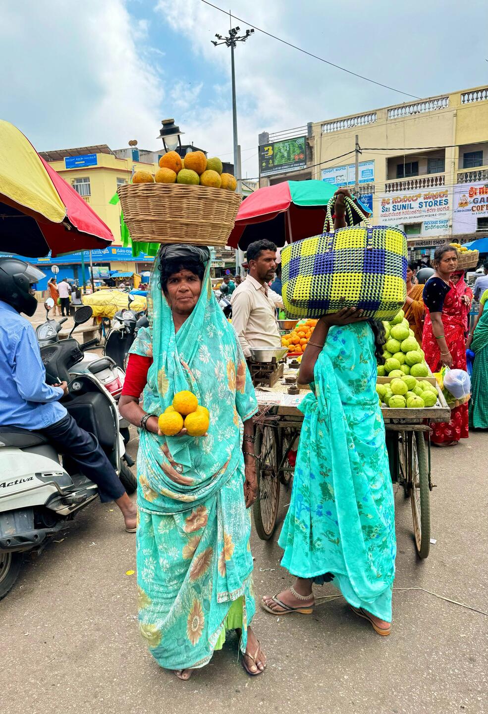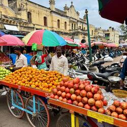 Es bunter Markt auf denen es hauptsächlich frisches Obst und Gemüse gibt. Es ist sehr laut und fuselig, ein echter indischer Markt. Ich habe mich durch probiert und einige Fragen gestellt :)