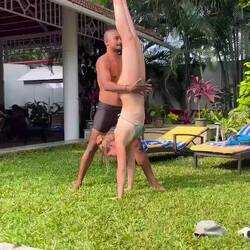 Wenn richtig gutes Wetter ist und „rest day“ also keine anderen Kurse am Tag gehen wir auch gerne in den Pool und üben Handstand oder machen verrückt Partner Übungen