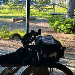 Leider war mein Stellplatz hinter dem Wohnmobil nicht super glatt, da bin ich in der Nacht bisschen in die Zeltecke gerutscht. Morgens noch an meinem Lenker gebastelt, da ich eine neue GoPro Halterungもっと詳しく