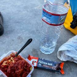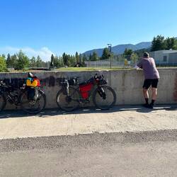 Selbst gemachtes Müsli und Toast mit Marmelade zum Frühstück und recht zeitig auf dem Rad gesessen. Langer harter Tag, 125km, 1900hm.