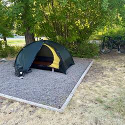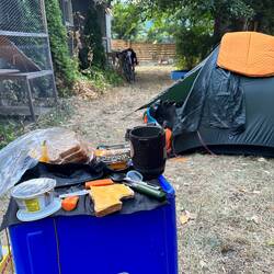 Mein Zelt-Nachbar (mit dem Motorrad) hat eine laute Luftmatratze gehabt und zusätzlich noch ganz gut geschnarcht. Zum Glück habe ich immer meine Ohrenstöpsel parat. Morgens wieder Müsli und esもっと詳しく