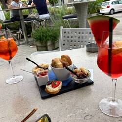 Trotz Gwitter und rächt starchem Räge mached mer üs uf nach Bozen. Während em Zmorge zieht es Gwitter über üs und eimal blitzt‘s und Knallt‘s als öb‘s nebe dra iigschlage het…