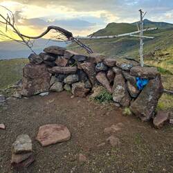 Um 2:20 ist Alex schon wach. Auch ich habe schlecht geschlafen und bin immer wieder mal munter gewesen. Er macht sich noch Tee, dann ist er auch schon mit der Stirnlampe am Kopf unterwegs. Die Kraterwanderung hat für ihn begonnen.