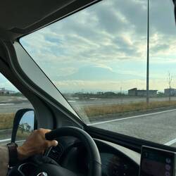 Dann wieder zum Auto,und ich fahre Kohbi ein Stück weiter unter ein großes Flugdach. Ich bleibe im Auto, während für Alex ein Canossagang beginnt: