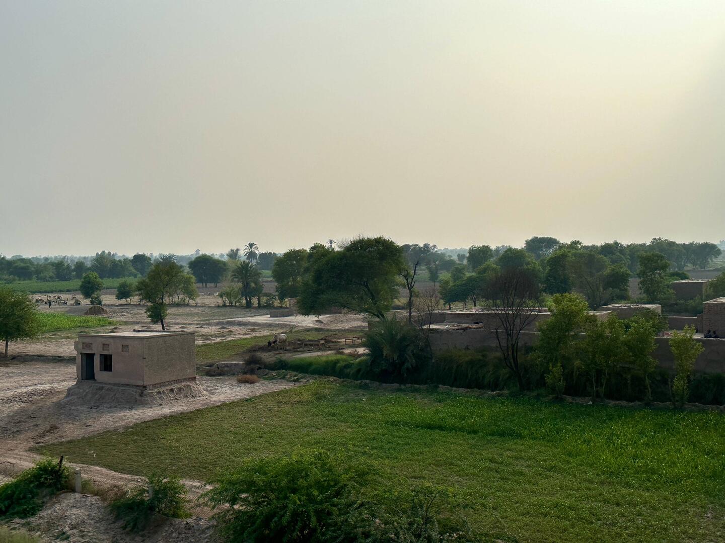 Ich hab ein wenig Zeit um mir die Gegend anzusehen. So viel Wasser, so grün, so viele Reisfelder, und Wasserbüffel, ich bin begeistert von dieser ursprünglichen Landwirtschaft, den rotbraunen Lehmgehöften, den Wasserbüffelherden, den plantschenden Kindern zwischen den Tieren, die Frauen arbeiten in den Feldern, dazwischen Dattelpalmen-Plantagen. So mag es wohl vor 1000 Jahren hier auch schon ausgesehen haben. Wir fahren vorbei an Ziegelbrennereien. Tolles,schönes, ursprüngliches,erdiges Pakist