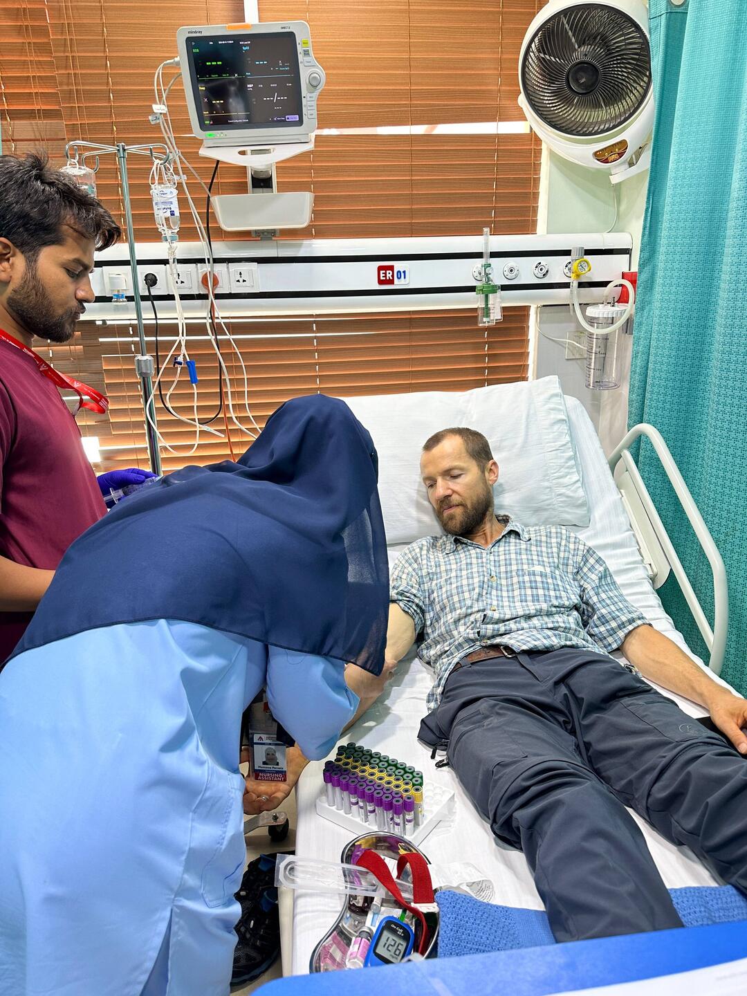 Wir gehen hinein, und werden sofort in die Emergency hineinkomplimentiert. Alex legt sich aufs Bett, bekommt eine Infusion, weil er schon dehydriert ist vom Durchfall und ein Medikament. Alles intravenös durch einen gelegten Zugang.