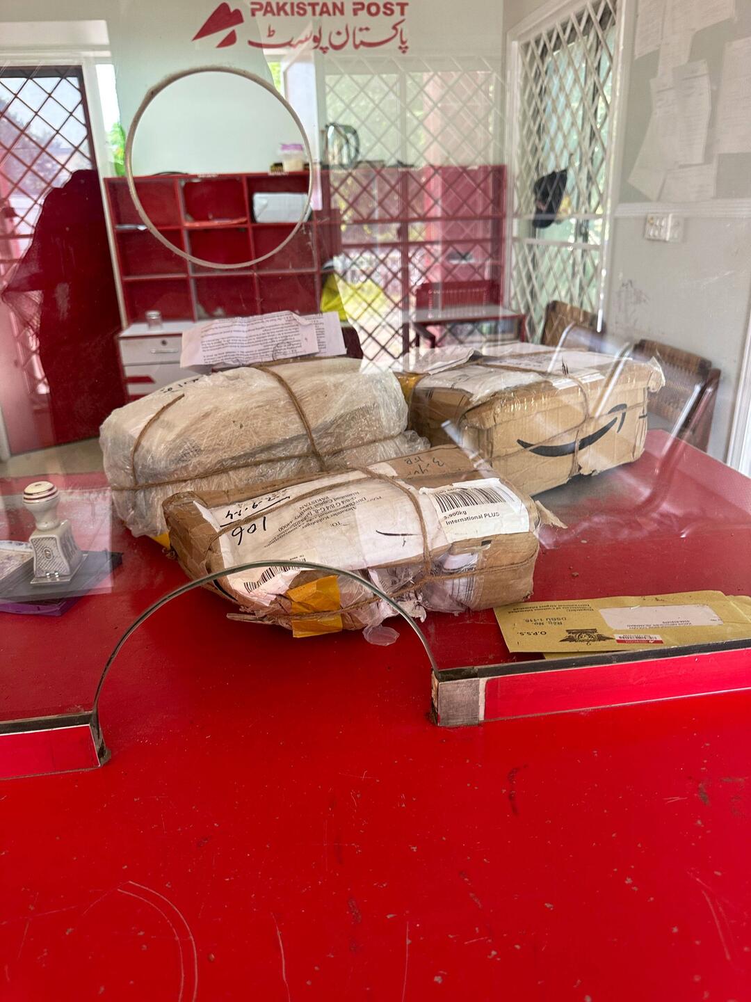 Bei der richtigen Poststelle holen wir nach mehreren falschen Anlaufstellen 3 unserer 5 Pakete ab. Wow! Alex`s Mama hat ganz tolle Arbeit geleistet. Und wir sind total happy. Diese 3 sind alle heil angekommen. Allerdings fehlt noch ein Paket, welches noch in der Zollstelle liegt. Lt. dem netten Postbeamten, welcher auch noch wegen Rückfragen uns seine Telefonnummer gibt, können wir den Versandweg abkürzen und das Paket dort direkt abholen. Also nochmals 36 Minunten wieder durch die Stadt. Ich fahre heute, denn Alex hat permanent am Handy alles zu checken und zu recherchieren. Doch wir haben Pech. Das Paket darf nur von einem Pakistani aus der Zollpost-Sicherheitsstelle geholt werden, mit dessen ID-Karte und Zahlung des Zolltarifes. Wir rufen noch von dort unseren netten Postmann an. Und er wird uns helfen,wir holen ihn morgen ab und er wird das Paket für uns herausholen.