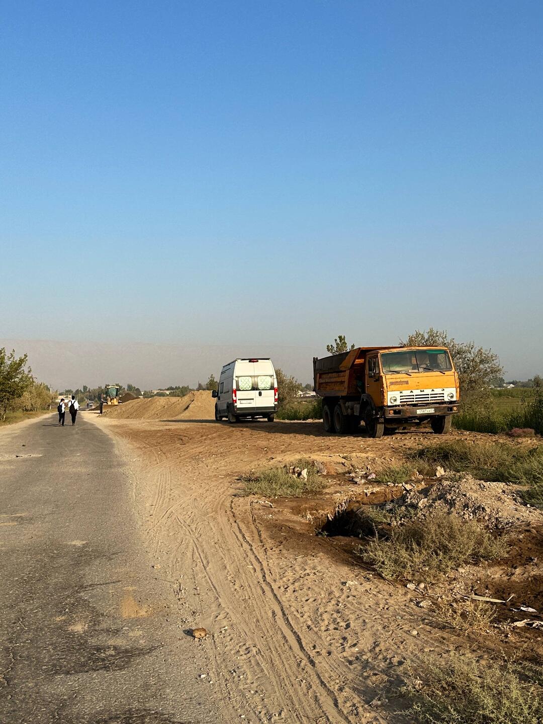 Dann kehre ich zum Kohbi zurück, Alex ist auch schon da. Und bald darauf auch der Bauunternehmer. Er heißt Bahrom, und bietet uns an uns zur nächsten Tankstelle zu bringen, da Alex unbedingt noch unsere leere Gasflasche füllen. Heute früh, beim Hinstellen unserer Teemarie, ging uns das Gas nämlich aus. Also im Durchschnitt kommen wir so ca. 3 Monate mit einer Gasflasche mit 10 kg Füllung aus.
