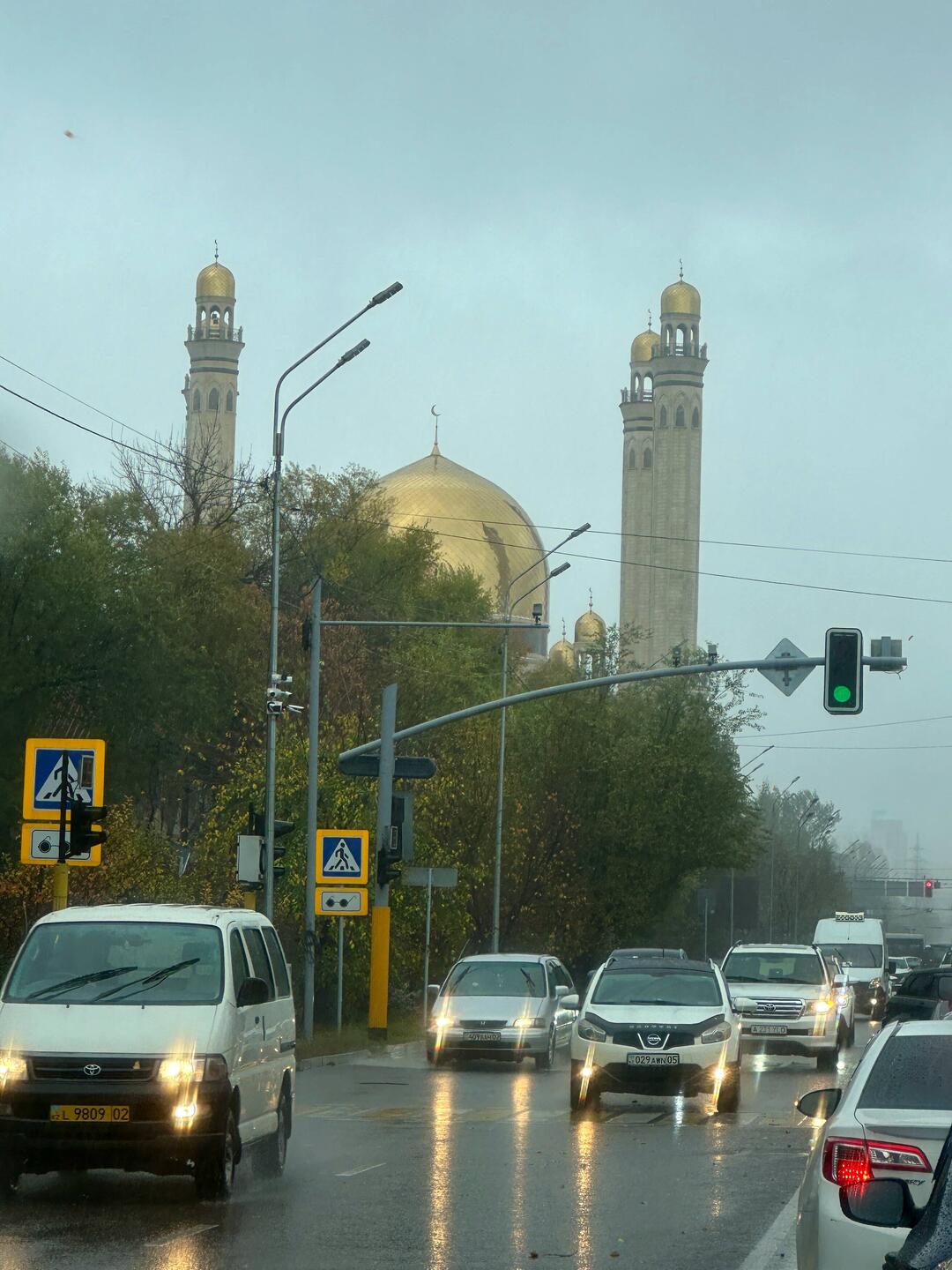 Es schüttet heute extrem, und wir machen Besorgungen in Almaty.