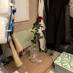 Aber wir mussten nochmals zum Werkzeugmarkt, denn Schraubenfett hatten wir vergessen zu bestellen. Als er zurückkam hatte er nicht nur Schraubenfett mitgebracht, sondern auch eine rote Rose! Die Freude, dáß alles geklappt hat, hat ihn wohl inspiriert. Ich hab mich sehr gefreut!