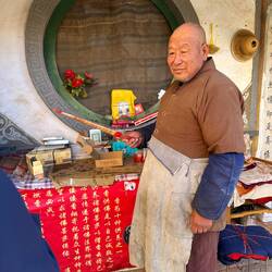 Diese sind durch kleine Klettersteige im Fels miteinander verbunden oder auch außen durch Treppen erreichbar. Im Vorhof des Tempels verkauft ein alter Mönch Räucherstäbchen, und ich kaufe mir auch welche, und entzünde sie und bete für eine gute Weiterreise. Ich fand es dort sehr idyllisch.