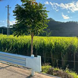 Wir fahren nach Zhenhuang. Der Himmel ist blau und ein paar weiße Wölkchen bevölkern den Himmel. Nach dem gestrigen Gewitter ist es wieder schön. Wir fahren an unzähligen Zuckerrohr-Plantagen vorbei.