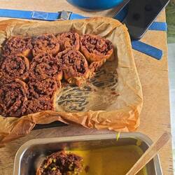 Danach machten auch wir unsere Frühstückspause, und bereiteten schon einiges für unser morgiges Weihnachtsessen zu. Ich machte den Teig und die Fülle für unsere veganen Apfel-Zimt-Schnecken und Alex machte sich an den Teig für die Kartoffelknödel, schnitt das Rotkraut und kochte Linsen und Pilze für unsere Leibchen.