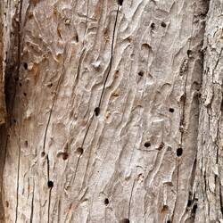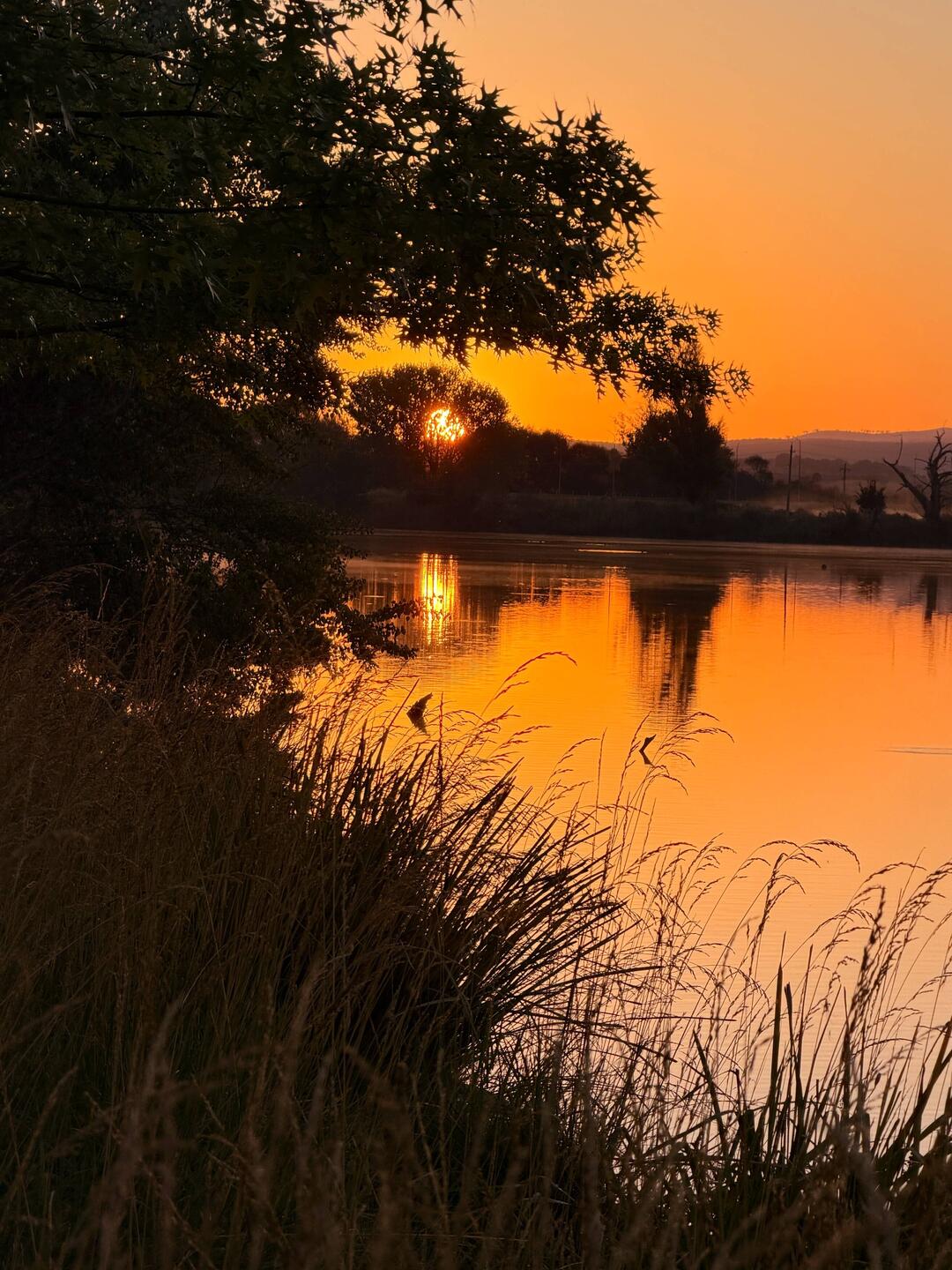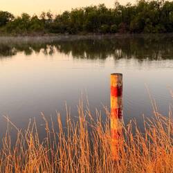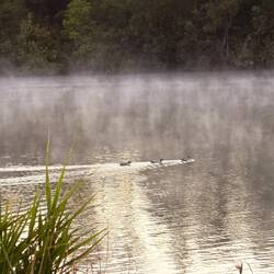 Wir sahen kein einziges. Doch die Oberfläche war so glatt, daß sich der Eukalyptus Wald ganz klar darin spiegelte.