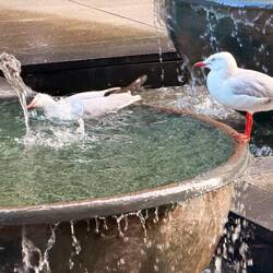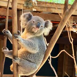 Wir haben Papageien bewundert, 2 x sahen wir ein Känguruh über die Wiese hüpfen. Ein kleiner blauer Vogel hielt sich auch immer in unserer Nähe auf.