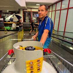 Ich hatte leider zuviel Wasser eingekauft, und da wir eh schon so schwer beladen waren, brachte ich die 4 Liter Wasser zurück und bekam eine Gutschrift.