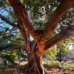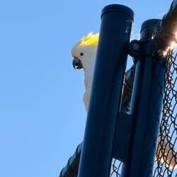 Wir genossen das Gekreische der weißen Kakadus in den hohen Bäumen, die aufgeregt hin und her flogen, sich auch auf den Hochspannungsseilen niederließen und auf einmal total witzig sich nach vorne fallen ließen und dann kopfüber am Seil hingen und mit den Flügeln schlugen und dann sich damit wieder in die Normalposition bugsierten. Das sind schon lustige Vögel mit furchtbarem Gekreische.
