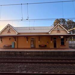 Wir bestiegen unsere Reiseräder und los ging es. Nach dem ersten Kilometer Asphalt mündete dieser in eine Schotterstraße. Aber ich tat mir heute unendlich leicht. Gemütlich ging es durch die Weiden dahin, ab und an radelten wir durch beschattete Wäldchen. Nach einer ausgiebigen Frühstückspause im Schatten gings über den einzigen steilen Abstieg Richtung Lennox Head. Alex fuhr anscheinend fast mühelos den Berg hoch. Ich musste absteigen und das schwere Rad schieben. Einfach zu steil. Da kam mir mein liebster Ehemann schon entgegen, nahm mein Rad und fuhr das letzte steile Stück hinauf. Bald darauf erreichten wir den Endpunkt Lismore mit dem schönen alten Bahnhofsgebäude. Ich kaufte mir in der Bäckerei ein Stück Kuchen und Alex ein großes Mars bei Seven Eleven. Unsere Belohnung fürs Strampeln sozusagen.