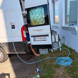 Die nächste Station war die Wasserfüllstation in Tenterfield. Zuerst fuhren wir hin, um zu schauen, welchen Adapter wir brauchen würden. Diesen kauften wir dann im 2. Baumarkt in Tenterfield, fuhren zurück und füllten unseren Tank an. Da wir noch altes gefiltertes Wasser aus dem Crooked Creek drinnen hatten, waren wir rasch voll. Alex überlegte nicht lange und ließ den ganzen Tank nochmals aus. Bald war er vollkommen leer und nun konnte das gute Trinkwasser in den Tank. Solche Trinkwasser-Zapfstellen gibt es in fast jeder größeren Stadt. Die Bezahlung geht sogar per Kreditcarte bargeldlos.