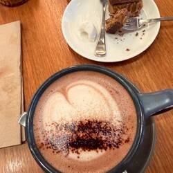 Eine vegane heiße Schokolade genehmigten wir uns auch noch. Wir tranken sie auf der Veranda, vor der etliche Papageien sich Futter holten. So prächtige Vögel, und so farbenfroh. Danach gings endlich weiter.