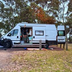 Samstag haben wir Bekanntschaft mit Matthias und Vanessa gemacht. Sie hat es auch hier an den Crooked Creek verschlagen. Ein junges deutsches Pärchen, auf Work und Travel Tour mit einem kleinen weißen Bus, den sie sich hier in Australien gekauft haben.