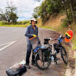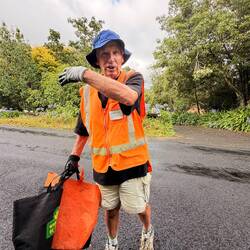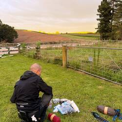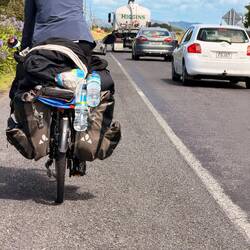 Nach so einer Steigung trafen wir Doug. Er war ein Araroa-Trail Angel, der hier auf dieser Straße jeden Tag seine 8 km abgeht um Müll aufzusammeln. Wow! Wir waren total begeistert. Er lud uns beim Gespräch auch noch auf Kaffee ein, da wir jedoch erst so kurz unterwegs waren, wollten wir noch Kilometer machen und verabschiedeten uns herzlich von ihm.
