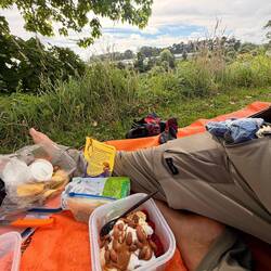 Nach Cambridge, dort wo der River Trail endete, bogen wir auf den Araroa-Trail ab. Auf einer schon hoch gewachsenen Wiese nahmen wir unser Mittagessen ein. Am nächstgrößeren Ort hatten wir noch einen Woolworth ausfindig gemacht, dort kaufte ich nochmals Wasser nach, und Alex gönnte sich noch ein kleines Eis und ein Mars.