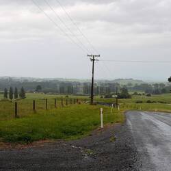 Unsere weitere Route führte uns durch eine hügelige Landschaft, wo ein Besitz sich an den anderen reiht. die Zäune gehen bis zu ca. 3 m an die Straße heran, und es gibt jeweils ein Einfahrtstor, wo dann eine Straße bis zum Haus führt, das man oft gar nicht sieht, so weit liegen diese oft weg von der Straße.