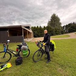 Während Alex die Räder aus der Garage lud und alles zusammen baute, bereitete ich unser Frühstück und auch das Mittagessen vor. Alles fand Platz in unseren Rad-Packtaschen. Alex lud wie immer mehr in seine hinein, er war mindestens 5 Kilo schwerer als meine.Den Trainingseffekt wolle er nicht missen, meinte er.