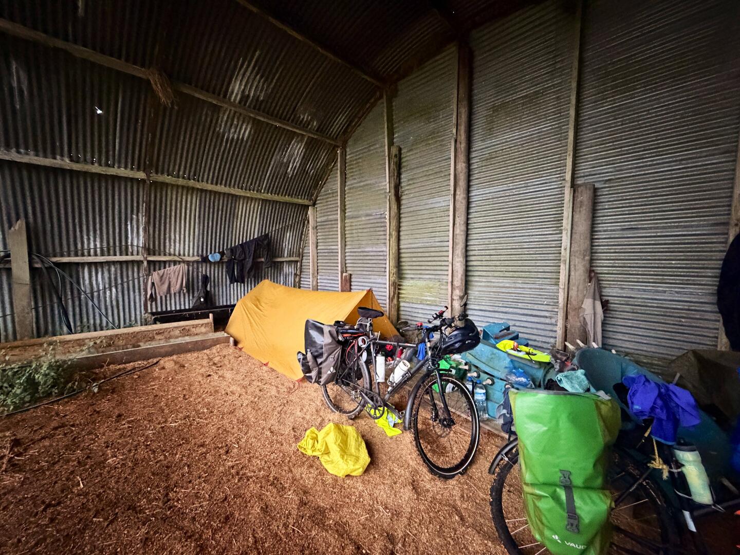 Und da stand sie. Groß, ein Wellblech-Halbrund mit vielen Strohballen darin, Platz für uns und unsere Fahrräder.