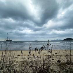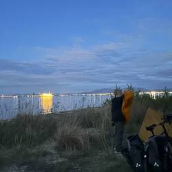 Wir hören die Wellen an den Strand schlagen. So herrlich! Es hat ca. 12°, also wird es kuschelig in unseren Schlafsäcken.