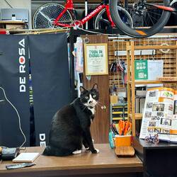 die kleinen Gassen hinein, aber schon nach der zweiten Ecke blieben wir im ersten Bikeshop der Stadt hängen. Alex kaufte sich ein Kapperl unter dem Helm, ich noch eine bessere Radlhose, denn mit der jetzigen bin ich schon wundgescheuert. Die kommt morgen weg! Und dann der Clou: Alex kaufte mir eine Vorbauerhöhung, ca. 10 cm, ich sitze jetzt aufrechter, rutsche mit dem Po nicht mehr nach vorne (Alex hat mir auch den Sattel gerade gesetzt) ich hoffe, morgen entspannter auf dem Radl zu sitzen, und meine Nackenmuskulatur nicht mehr so zu quälen. Die Mädels im Bikeshop griffen selber zum Schraubenzieher und die 4 Katzen dort fühlten sich richtig wohl - so wie wir. Auch eine Popocreme ging dort noch für mich mit. Mit einem guten Tipp, wo wir gleich ums Eck auch noch unser Zelt aufschlagen können, verließen wir den wirklich kompetenten Bikeladen. Bald hatten wir einen geschützten