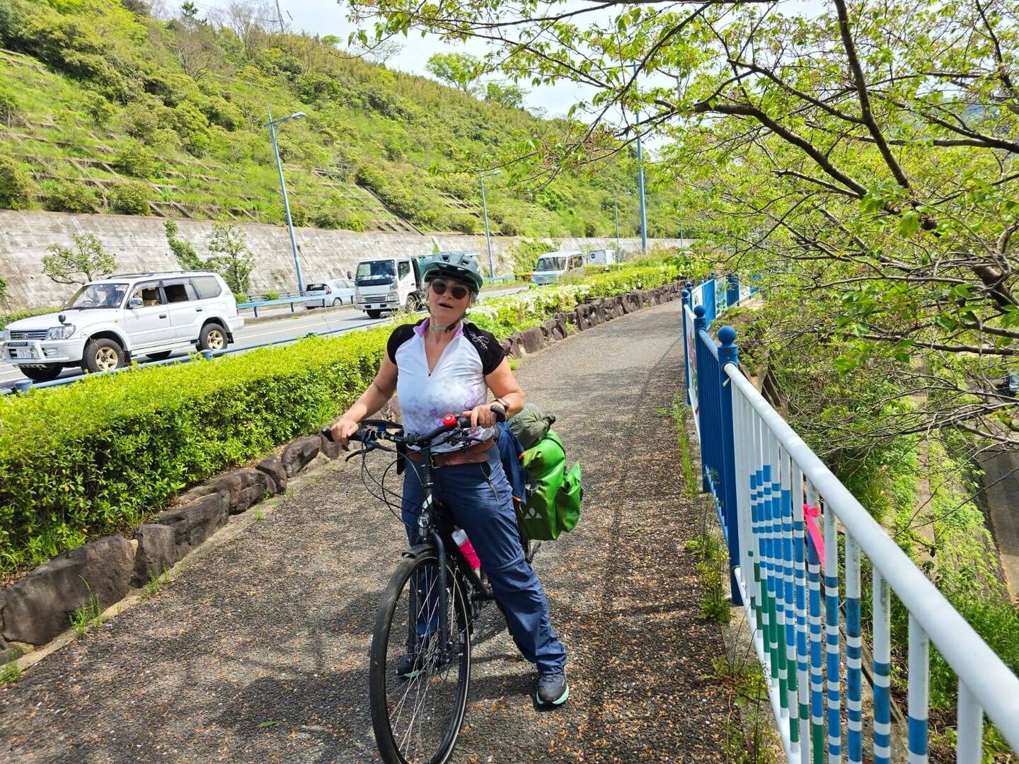 Nagasaki liegt von vielen Hügeln umschlossen am Meer. Wir strampelten also 2 wirklich steile Hügel hinauf mit unserem schweren Gepäck und konnten auf der Bergabstrecke es so richtig tuschen lassen.