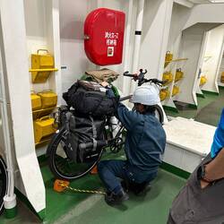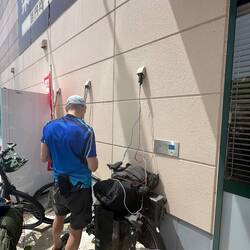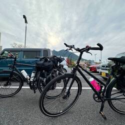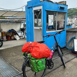 Nachdem wir gestern am Flughafen von Fukuoka bei strömendem Regen um ca. 1ßh gelandet waren und unser Gepäck ziemlich schnell entladen wurde, hat Alex unsere Räder auf einem ruhigen Eckerl vom Flughafen zusammengebaut. Ich räumte inzwischen die Packtaschen ein und dann gings ca. 20 Minuten durch strömenden Regen mit Linksverkehr in unsere Unterkunft. Am Weg kauften wir noch Abendessen und Frühstück ein, und nach etwas Suchen konnten wir Abendessen, ein warmes Bad genießen und die heutige Radlroute planen.
