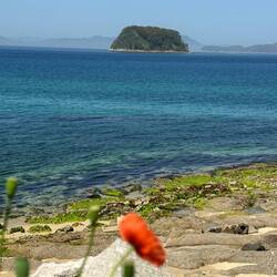 Heute werden wir durch Pinienbäume geschützt, auch der Wind vom Meer hat nachgelassen.