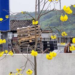 Heute haben wir nur bis 6h geschlafen, da wir einige Kilometer abspulen wollten.Aufgrund der Nähe des Flusses war unser Zelt außen waschelnaß, auch innen leider durch das anliegende Tarp. Wir packten also alles trotz Nässe in den Zeltsack und machten uns auf den Weg. Es ging durch Reisfelder, üppiges Grün, im Flusstal entlang.Die typischen japanischen Häuser und Bauernhöfe waren eine Freude für mein Auge, jeder Fleck der Erde wurde mit Gemüsegarten, Reisfeldern, oder Teepflanzen genutzt. In vielen Vorgärten blühten die Kirschbäume,Azaleen und Kamelien. Es ist ein wirklicher Genuss das alles in sich aufzusaugen und ich fahre dabei mit einem richtigen Grinsen durch die Gegend.