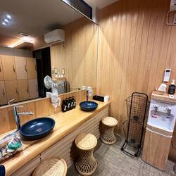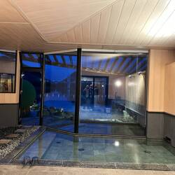 Da uns sowieso kalt war, schmiss Alex unser schmutziges Gewand in Waschmaschine und Trockner, die diesmal ganz nah neben unserem Zimmer platziert war. Und dann ging es ins hoteleigene Onsen. Herrlich! Duschen, die Muskel im heißen Wasser entspannen, Haare waschen und föhnen und als neuer Mensch ins Zimmer zurückgekehrt. Mein Schatz hatte inzwischen in der nächstgelegenen Pizzeria einen Tisch reserviert.