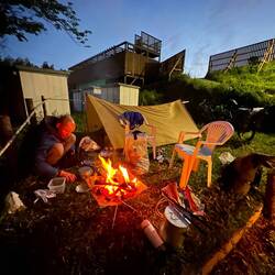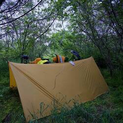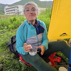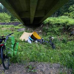 Ich, weil sich statt ebener Fläche eine Hügellandschaft durch die aufblasbare Isomatte drückte, und nur 2 Stellungen einigermaßen beschlafbar waren, außerdem war es total schwül, und es schüttete. Unter der Brücke war es trocken, jedoch hatte ich Rohre gesehen, die von der Fahrbahn nach unten führten, um das Wasser wegzubringen. Ich fühlte mehrmals in der Nacht am Boden des Zeltes nach, ob wir schon davongeschwemmt wurden.