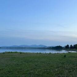 Sehr gut geschlafen! Am Morgen nutzten wir noch das WC zum Waschen, Zähneputzen und aufs WC gehen. Dann gings einen kleinen steilen Grashügel hinauf, das Radl haben wir geschoben,so steil wars. Es ging geruhsam den See entlang. Heute wir alles ziemlich eben, jedoch haben wir nur 16° und es bläst ein Wind entgegen unserer Fahrtrichtung.