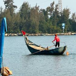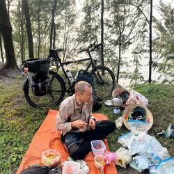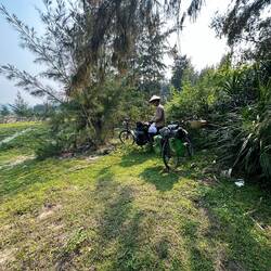 Wir kamen schon um 6:30 heute früh aus unserem Zeltplatz. Die nahegelegene Kirche hatte uns schon um 4:35 mit vietnamesischen kirchlichen Gesängen aus der Dose aufgeweckt. Ich fühlte mich zurückversetzt nach Pakistan, mit den Gesängen des Imam.
