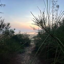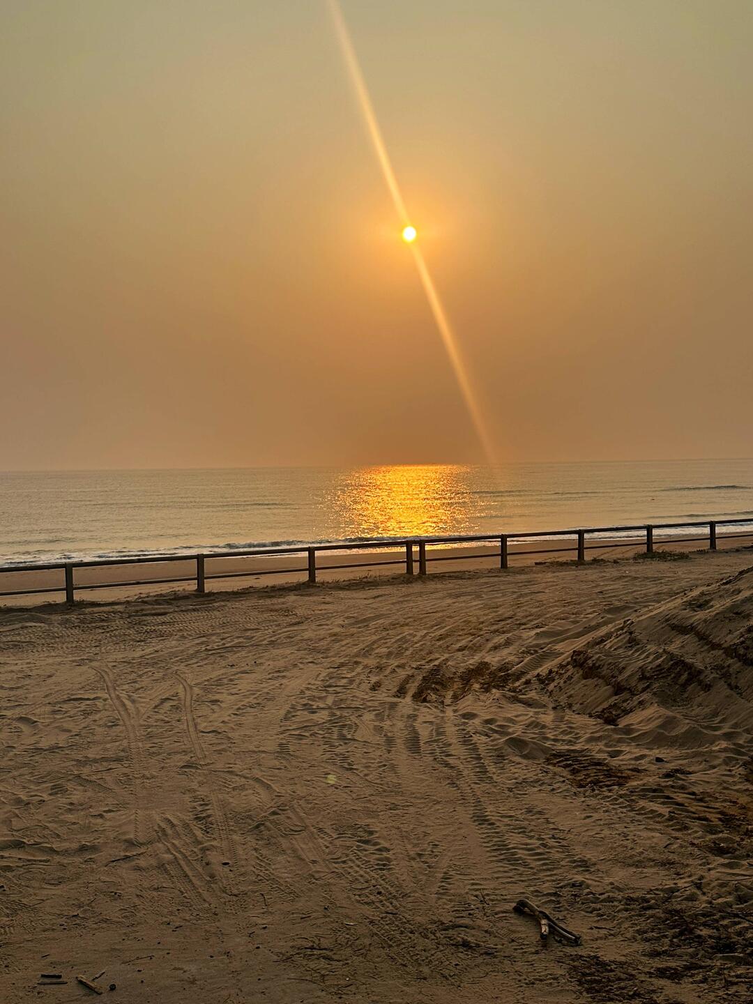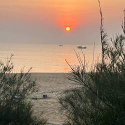 Am nächsten Morgen verlassen wir den Strand bei wunderschöner aufgehender Sonne.