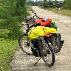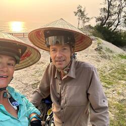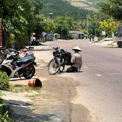 Wir haben auch mitten auf der Fernstraße ein eigenartiges Erlebnis mit den einzigen Rad-Touristen,die wir seit unserer Einreise in Vietnam zu Gesicht bekommen.