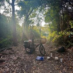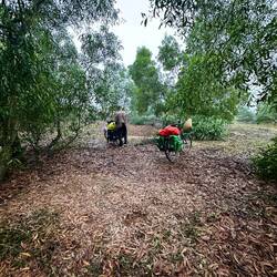 Ich fahre also schwerst bepackt los und suche vergeblich an 2 verschiedenen Stellen,wo ich glaubte einen Schlafplatz zu finden.