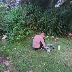 Gegen 14.30 kommt er mit dem Essen. Wir kochen uns herrliche Spagetti Nr.5 mit selbstgemachten Tomatensugo und Salat. Ich habe inzwischen geduscht und meine Wunden versorgt.