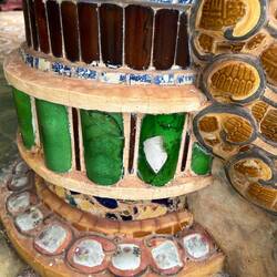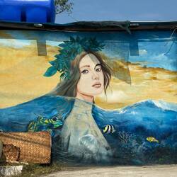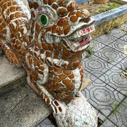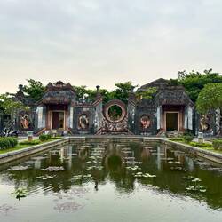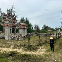 Diese sind nicht wie bei uns nahe der Kirche angelegt, sondern überall. Das kann ein Streifen zwischen Reisfeldern genauso sein, wie hinter der Dorfküstenstraße. Und es sind immer pro Familie eigene eingefasste kleine Grundstücke mit Einzelgräbern. Der Eingang durch die Einfriedung ist ein schmaler Durchgang, 60 cm dahinter eine Barrieremauer - mit Drachen, Löwen, oder Tigern geschmückt, um den direkten Durchgang von Bösem abzuhalten.