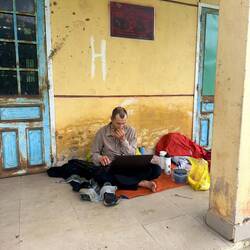 Wir suchen uns erneut einen Schattenplatz, dann bitte ich eine Vietnamesin um einen Eimer Wasser.